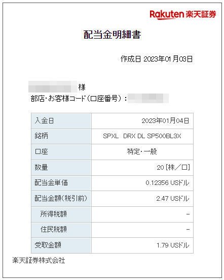 SPXLから配当がありました|2023.1