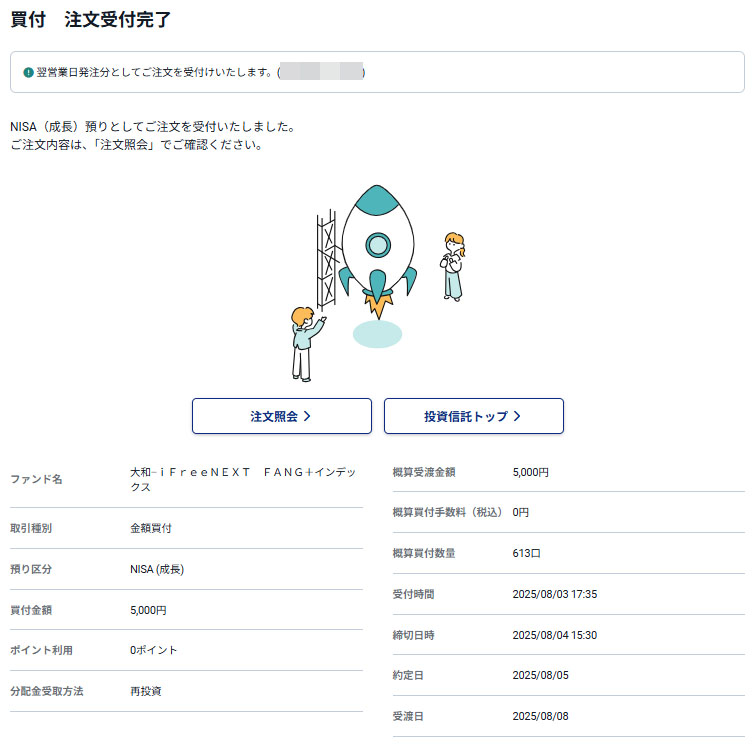 iFree NEXT FANG+インデックスを5,000円分買いました|2025.8.3