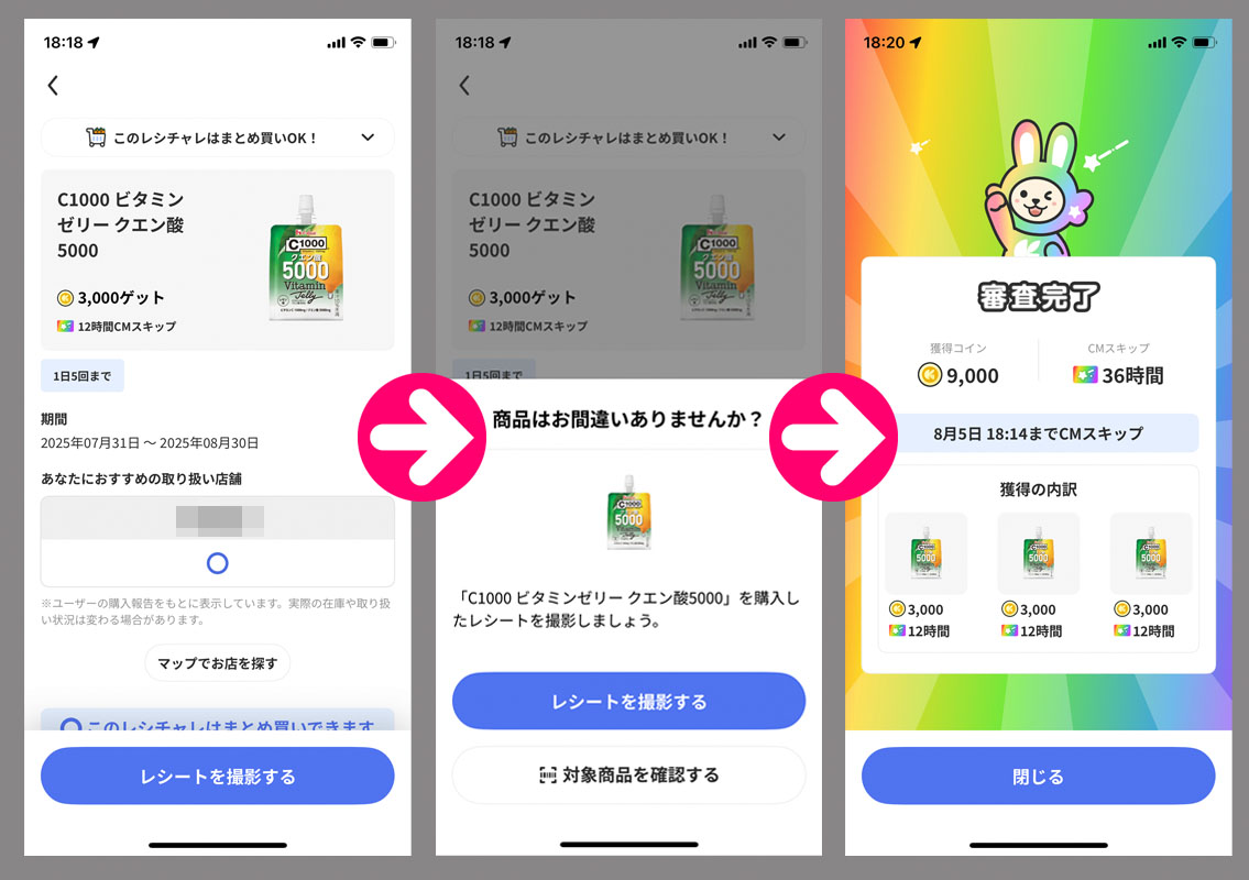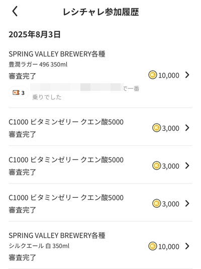 レシチャレに参加しました。今日は3アイテム・・・他、2アイテムも購入済みですが申請は3つにしておきました。今回はCMスキップの為です。最近は動画広告が長くなり通勤時間の殆どをコレに費やしてるのでいささか食傷気味になったので少しでも負担軽減を考えての事です。