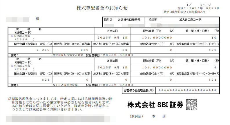 日本の高配当銘柄「日本たばこ産業」から配当が入りました。