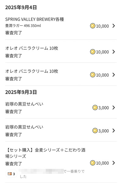クラシルリワードのレシチャレ108・109・110・111 クラシルリワードの「シルバー会員」期間が切れてしまい通常会員に格下げされたのでまたレシチャレしました。通常とシルバーでは移動のタンクが5→10になり、こればかりはタイパが悪くなるので10はキープすることにしています。ある意味課金になってしまいますが・・・。 サントリーの酎ハイと発泡酒のセット 岩塚のせんべい 2個購入 過去何回か参加したキリンのビール オレオのビスケット(クッキー?) 2個購入しました。 毎度なので今回からはザックリと・・・笑 全部で4種です。全て審査完了になりました。これで「シルバー会員」に復帰です。