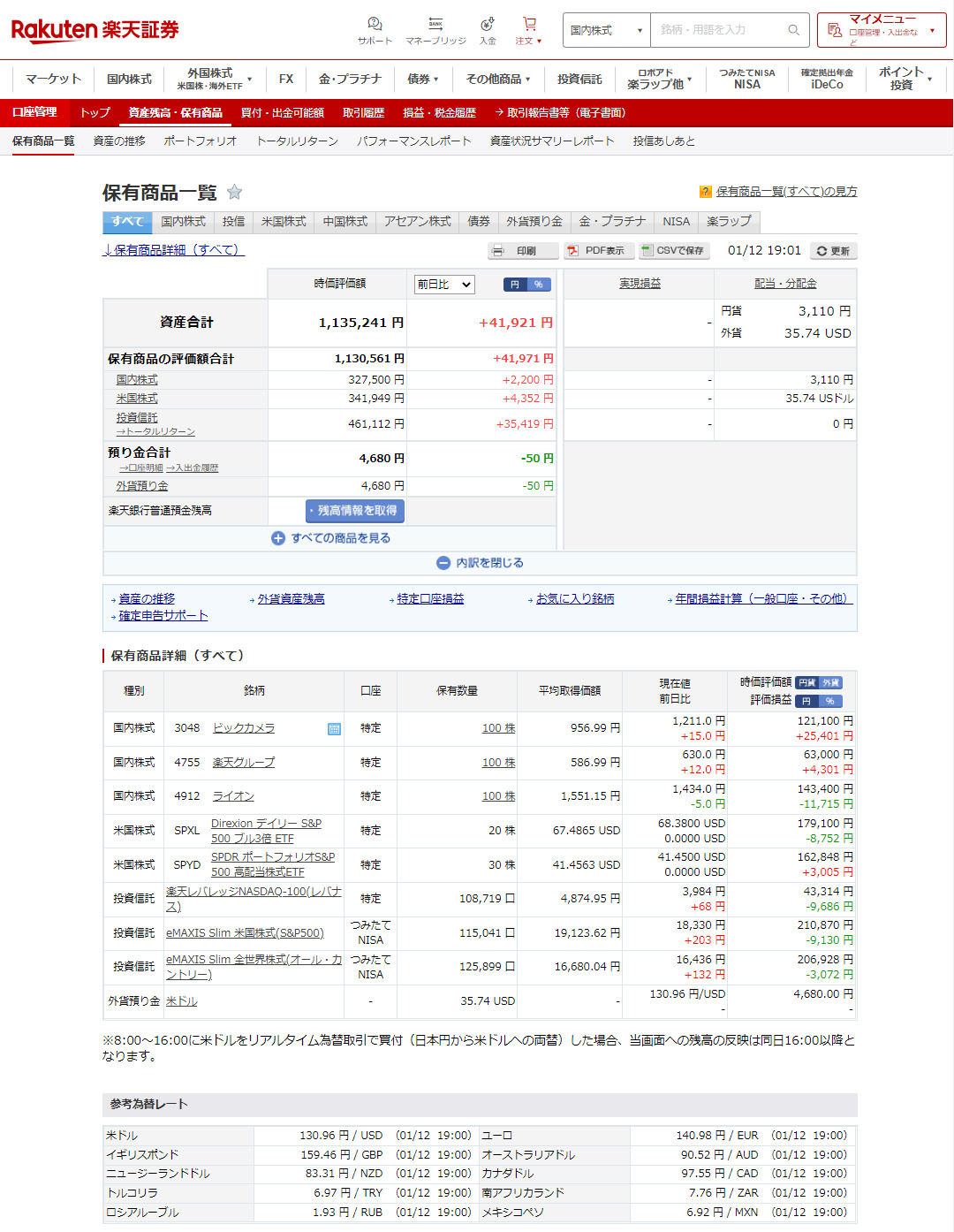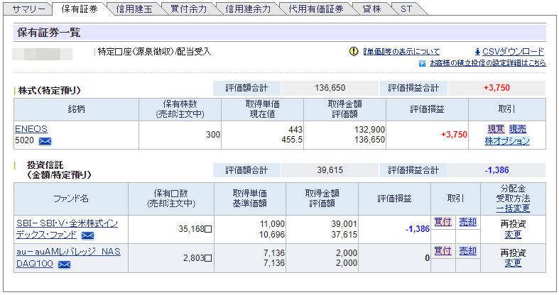 SBI証券は賑やかになりました。まずは日本個別株の「eneos」が300株加わり、こちらもかなり下がってた時に買ったので現時点では評価益3,750円が出ています。まぁ~こちらはインカム目的なので下がらなければイイな~ぐらいの位置づけ。