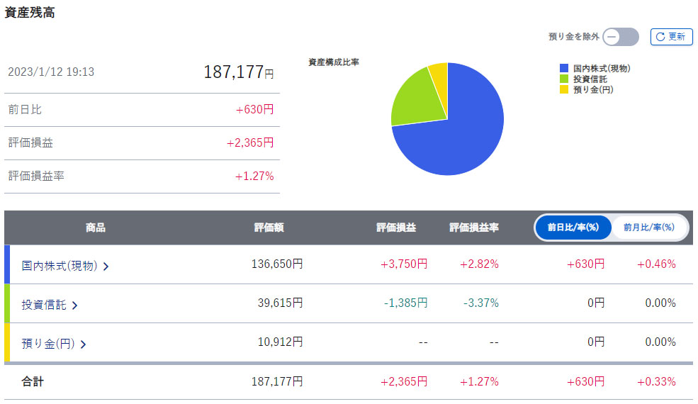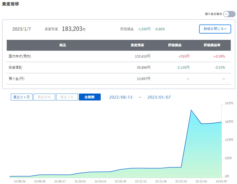 ここ1か月ほど下がり相場でしたが2~3日前からグロース銘柄も上がり少し損失も戻し気味です。