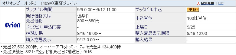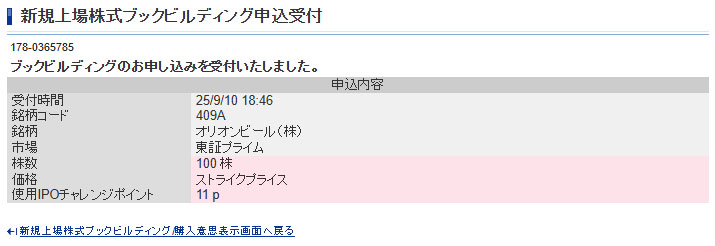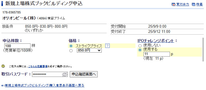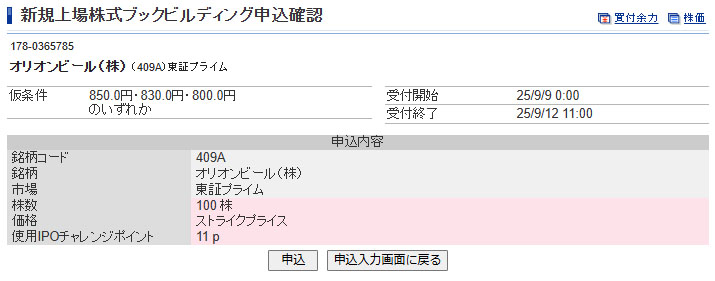 オリオンビールIPOブックビルディング申し込み|2025.9.10
