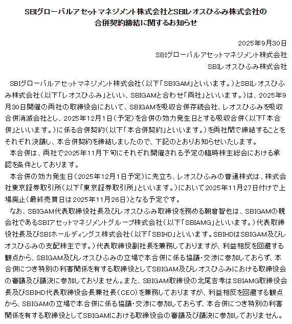 朝、「セブン銀行」と「ソフトバンク」の買い注文を入れて昼休みに株価をチェックすると「SBIグローバルアセットマネジメント」が強烈に下げていました。ネットで調べるとどうやら理由は・・・
