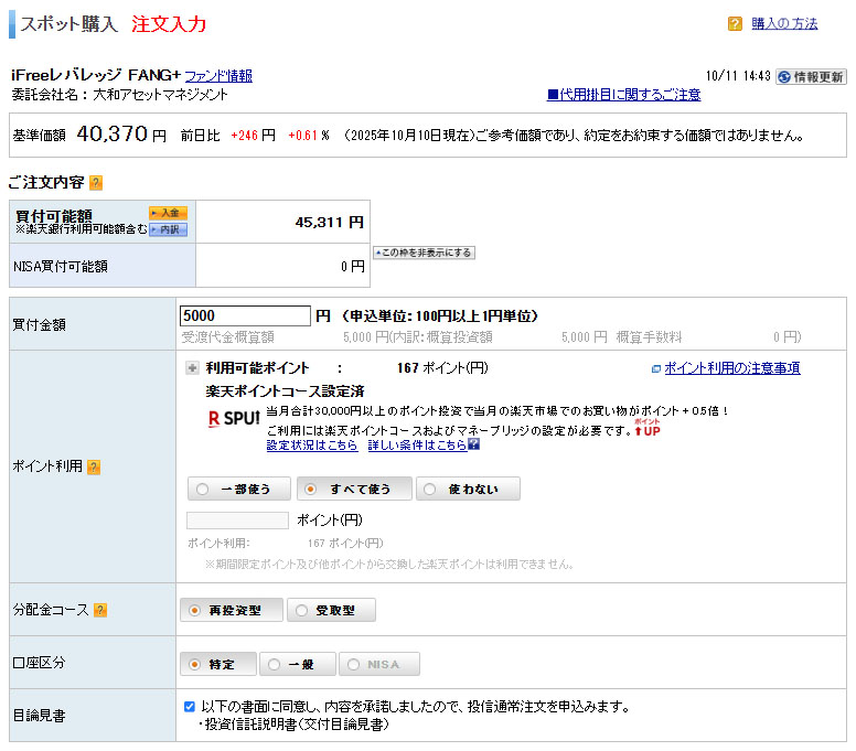 iFree レバレッジ FANG+を5,000円分買いました|2025.10.11