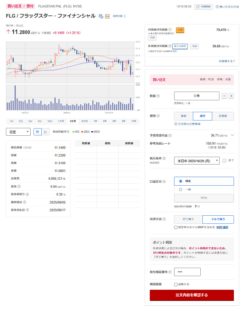 これで「フラッグスター・ファイナンシャル」は19株の保有となり