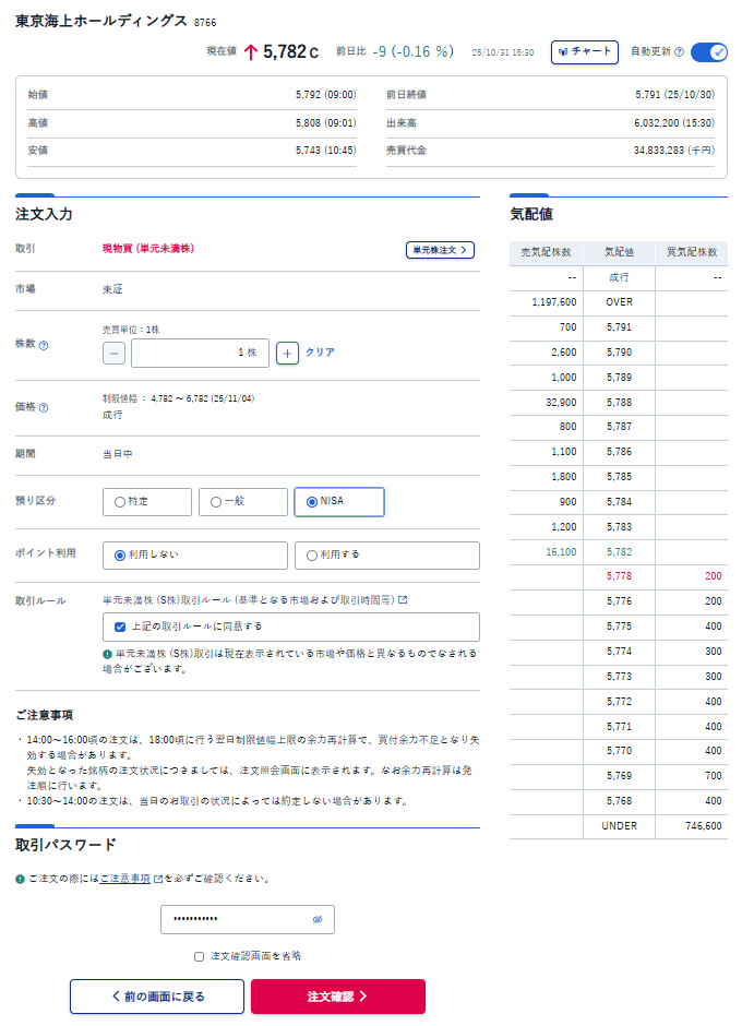 ここ数日「東京海上ホールディングス」が下げているので1株買うことにしました。