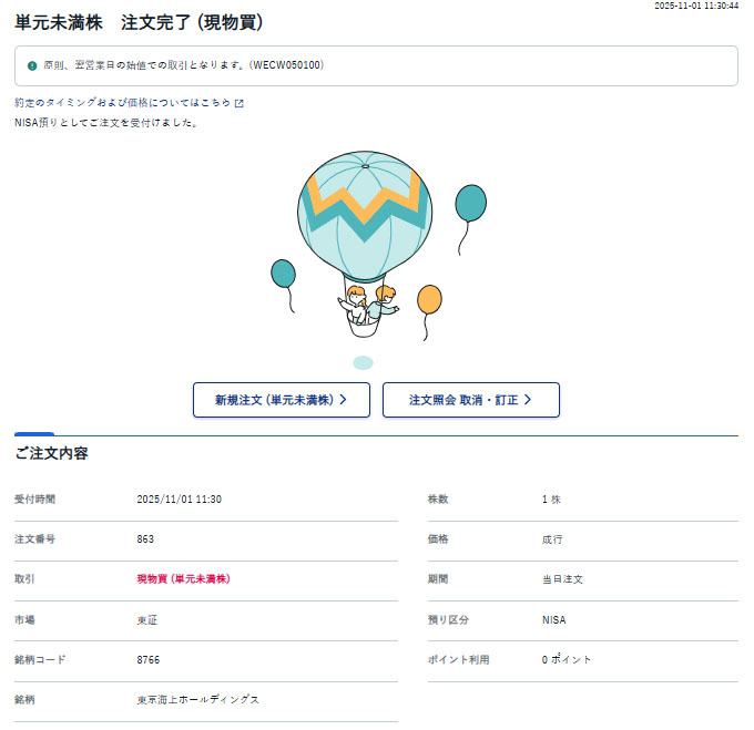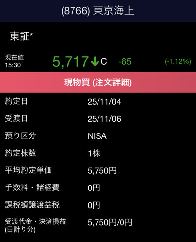 東京海上ホールディングス(8766)を1株追加|2025.11.1