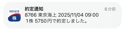 月曜日が祝日なので約定は11月4日(火曜日)の寄り付きの株価となります。
