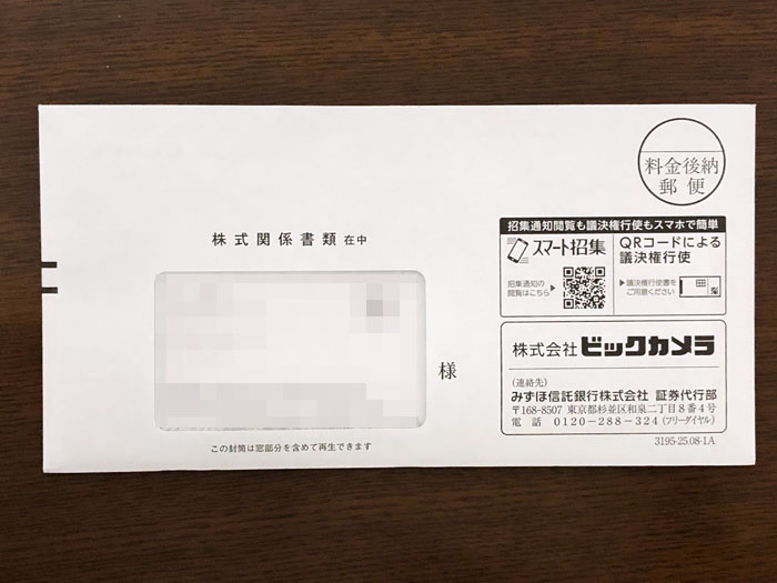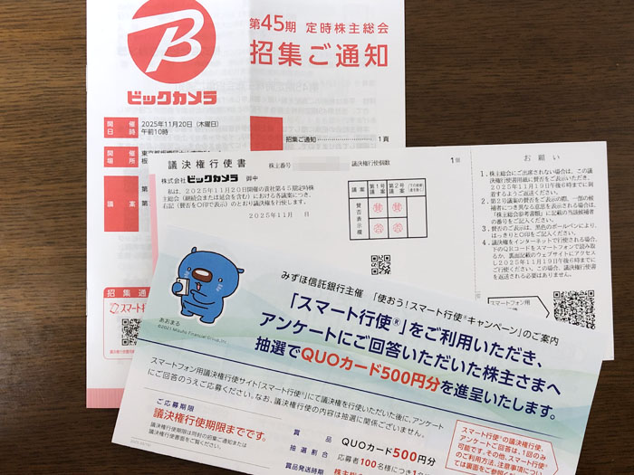 ビックカメラ(3048)から株式関係書類がきました|2025.11.6