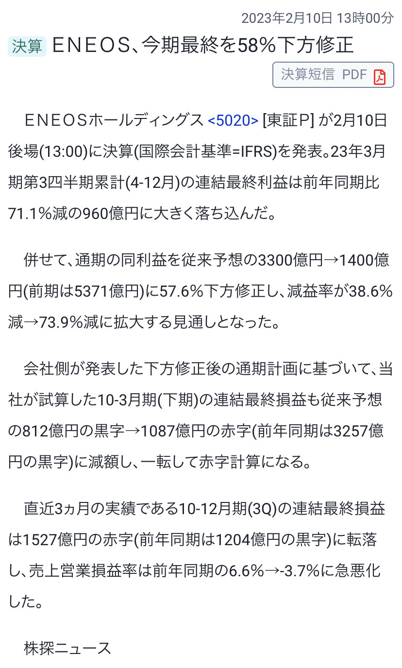楽天証券だとメールで気が付くのですがENEOSはSBI証券なので・・・。