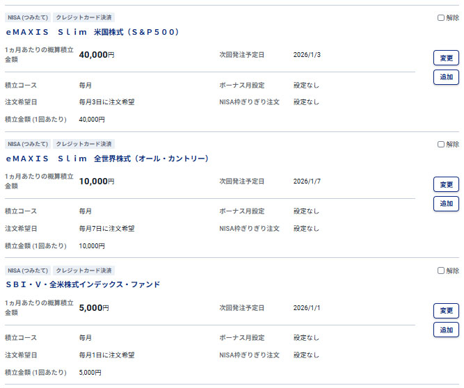 ただこの状況が長く続くとは思えず「S&P500」の月々40,000円の積み立ては維持して、リバランスというかあくまでも見直しで「オルカン」を5,000円アップして月々10,000円の積み立てに変える事としました。