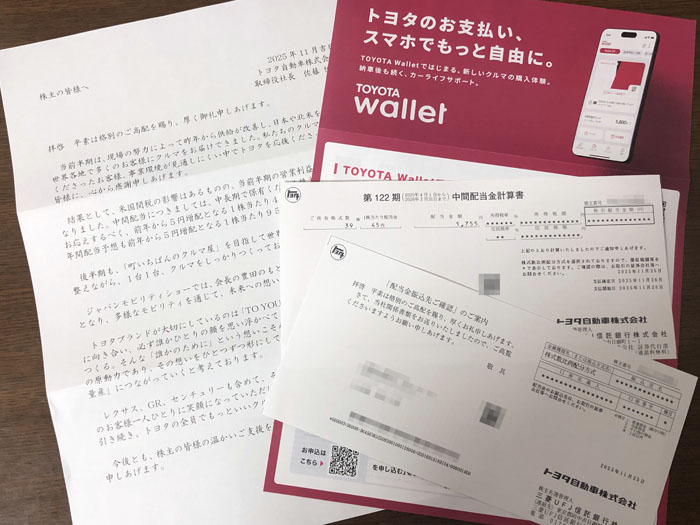個人的にあまり増配のニュース等を追いかけてはいないのでトヨタに限らずこのような郵便物の情報が頼りになります。まぁ全て事後にはなるのですが・・・。