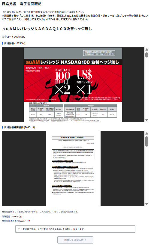 ファンドのページを開いたら「目論見書 電子書面確認」になりました。