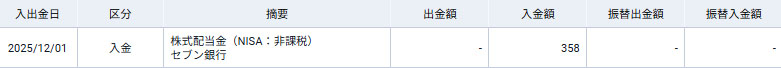 週明けの月曜日(12月1日)にセブン銀行から配当が入るようです!