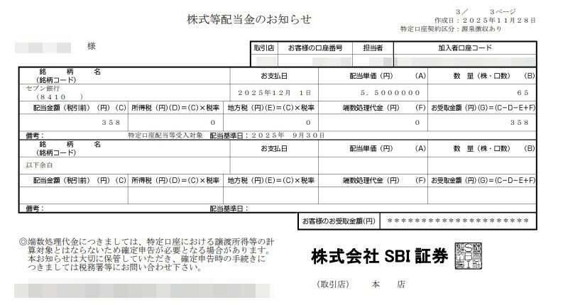 単元未満で買い続けている「セブン銀行」から配当が出ました。