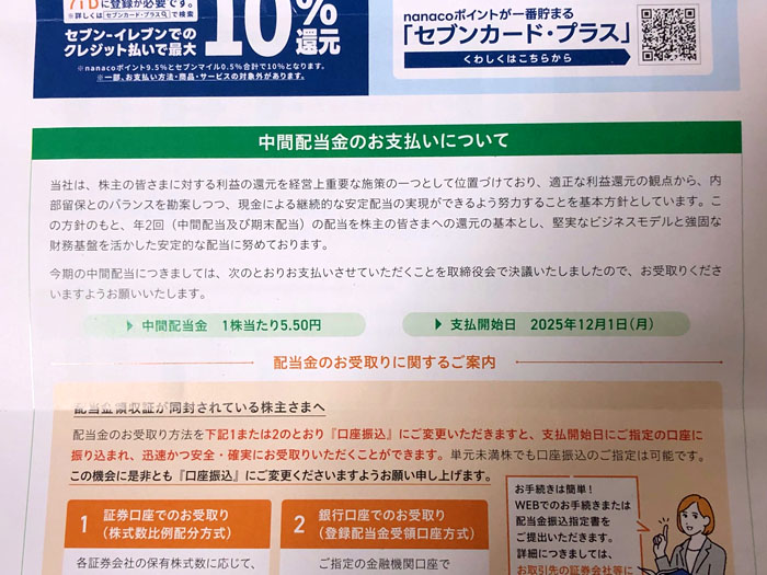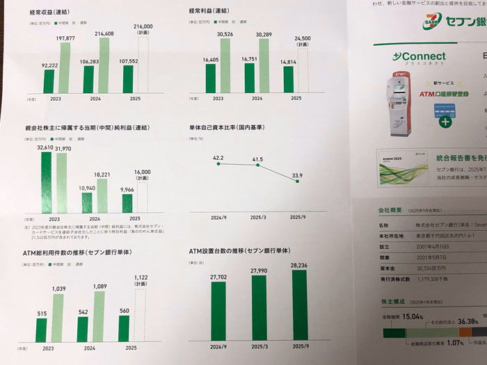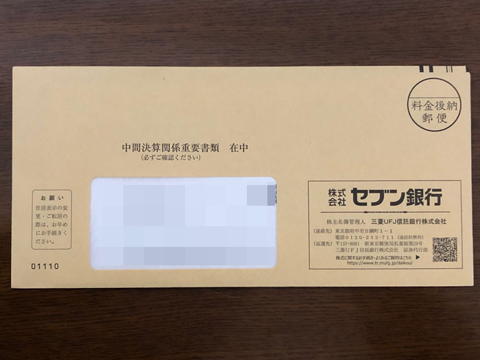 今日、中間配当の出たセブン銀行から「中間決算関係重要書類」が届きました。