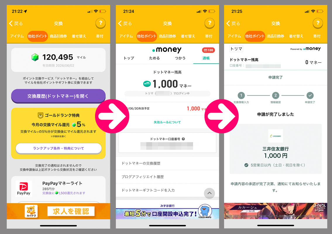 トリマで貯めたマイルをドットマネーに変換からの換金へ|2025.12.4