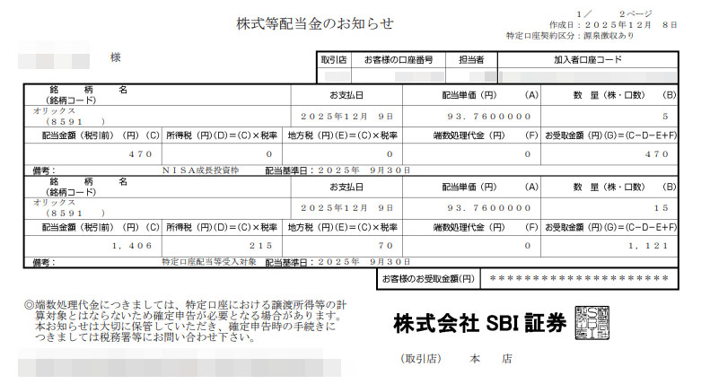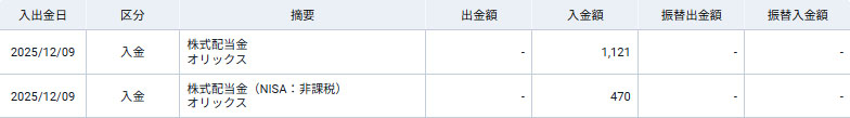 オリックス(8591)の配当が入りました|2025.12.9
