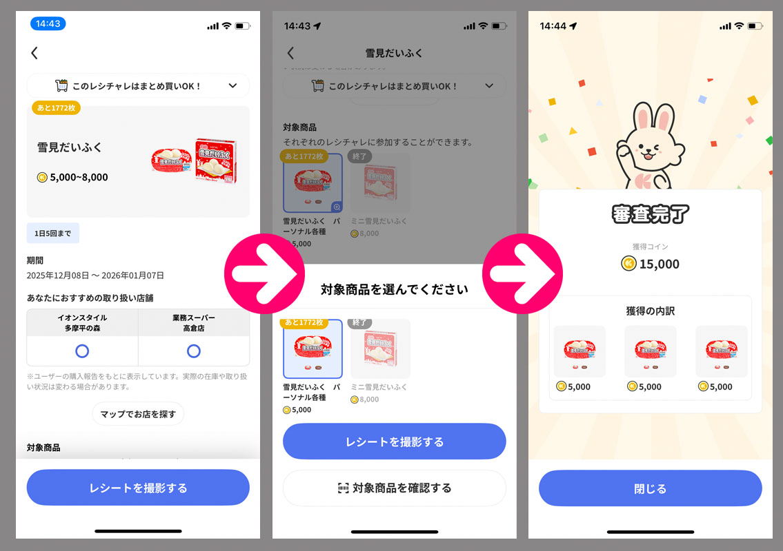 3つ目はロッテの「雪見だいふく」こちらはオリジナルに加え「チョコ」も対象だったので3個と2個買って計5個・・・しかし審査ではオリジナルの3個しか認識されず。。。