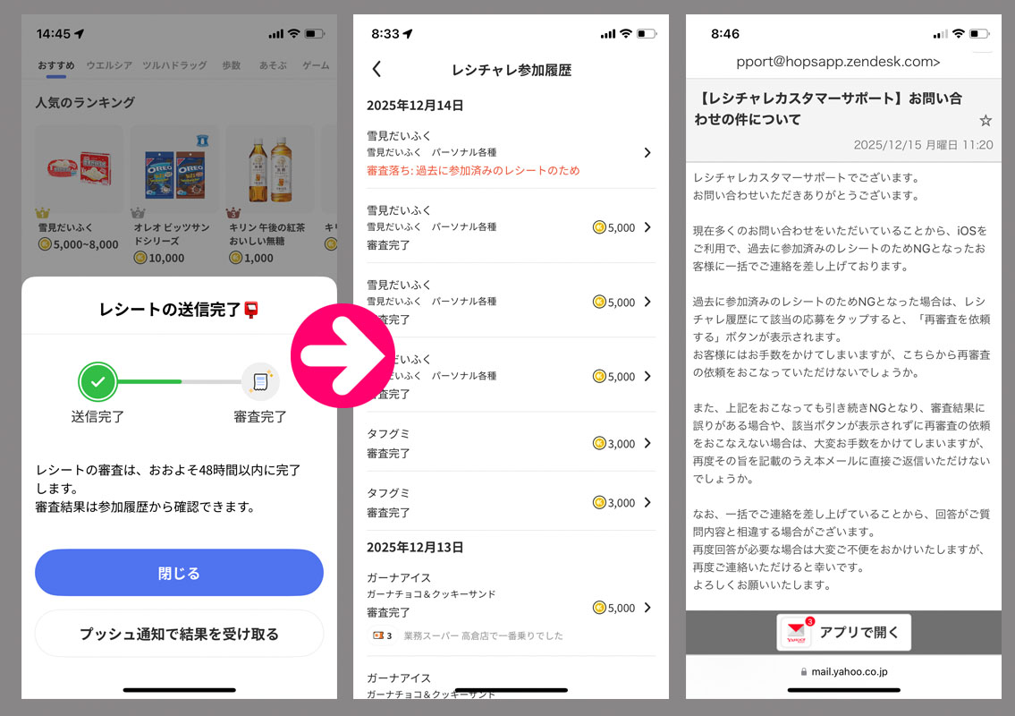 仕方ないので同じレシートで応募したら審査落ちになりました。。。