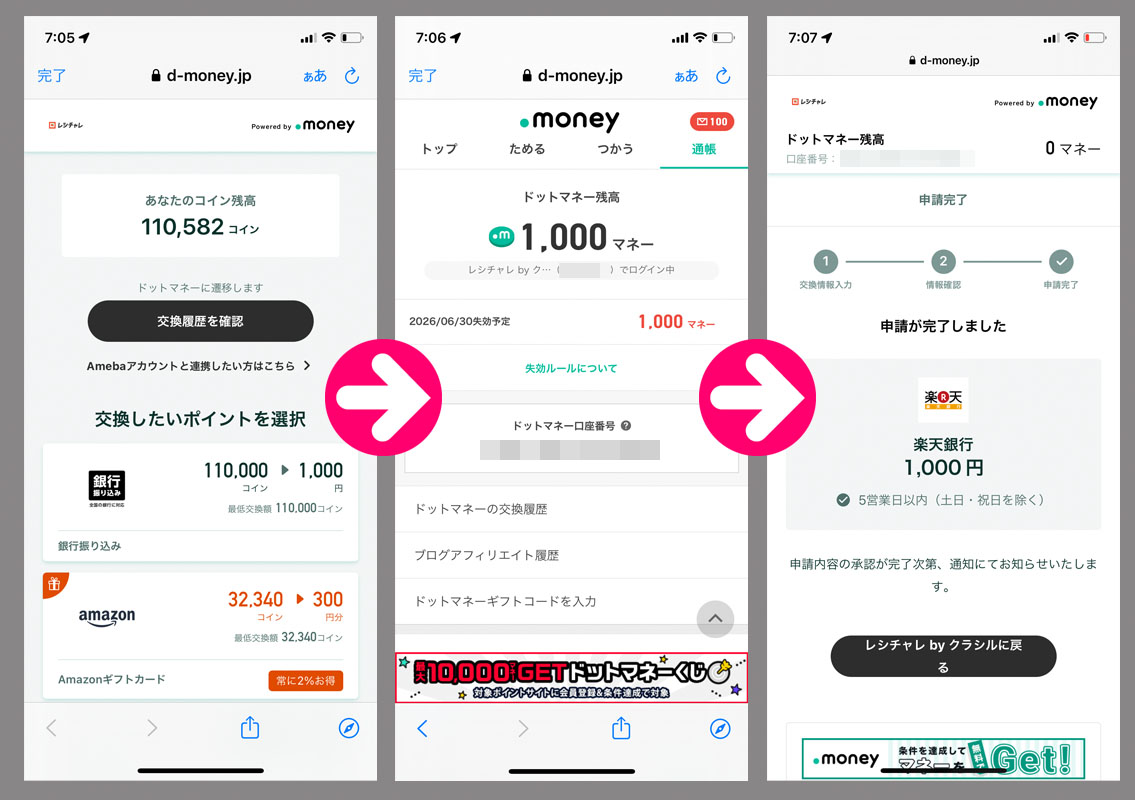 レシチャレのポイントが110,000まで貯まったのでドットマネーに変換からの換金手続きへ。