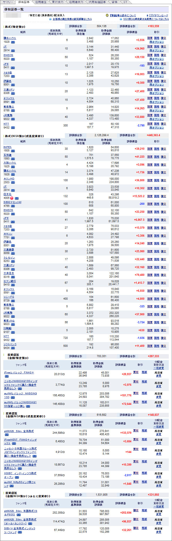 SBI証券のNISAも利幅が増えてきました。