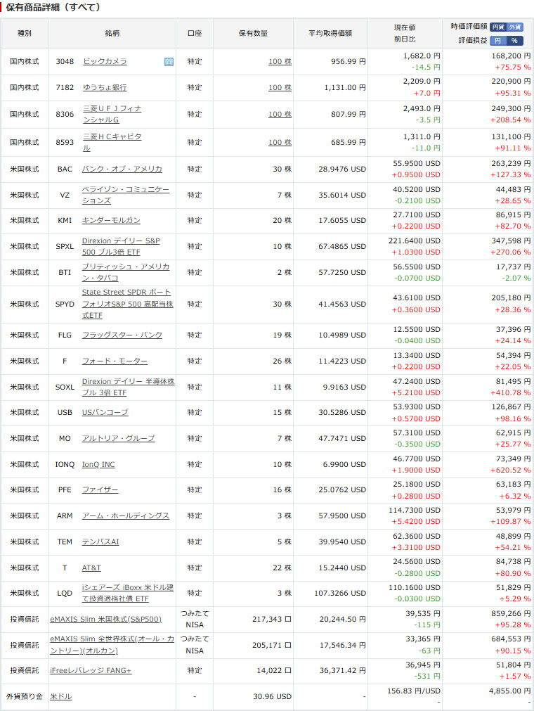 4月の関税ショック時に買い増したので現在はプラスに乖離が大きく出ています。