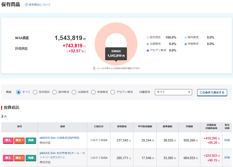 楽天の旧つみたてNISAはもう少しでダブルバガー