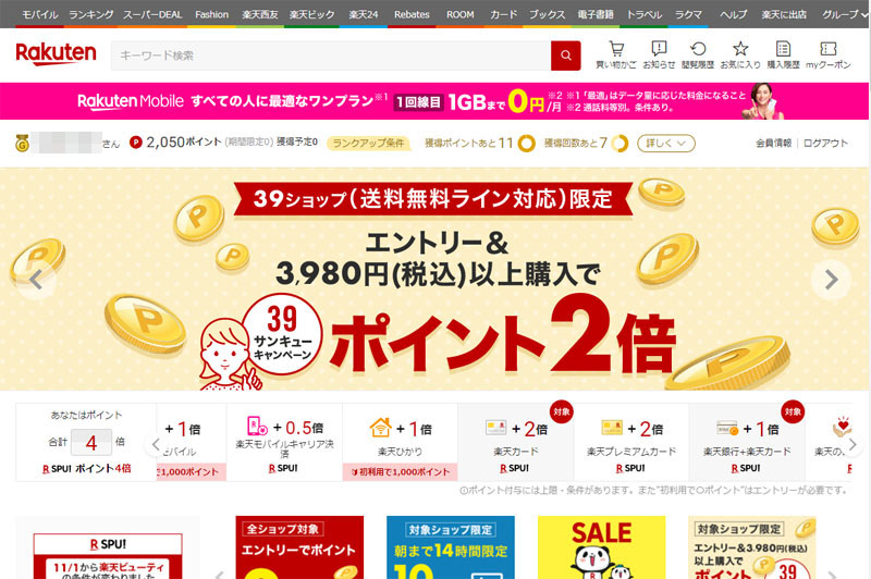 「楽天銀行+楽天カード」で「楽天カード」と重複してポイントが付くのも知りませんでした。