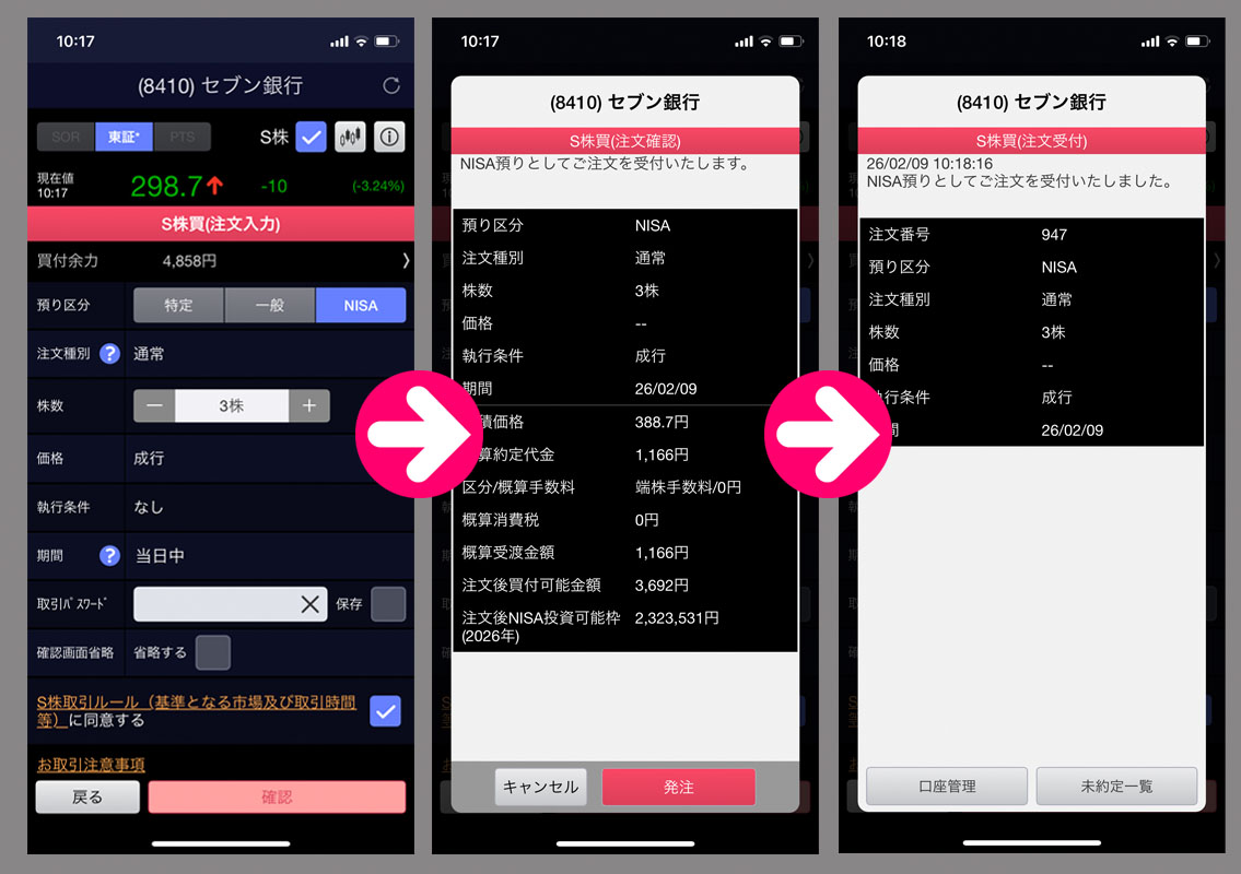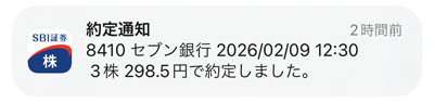 今月の「機種変代わりに~」の定期購入です。「セブン銀行」を3株買いました。