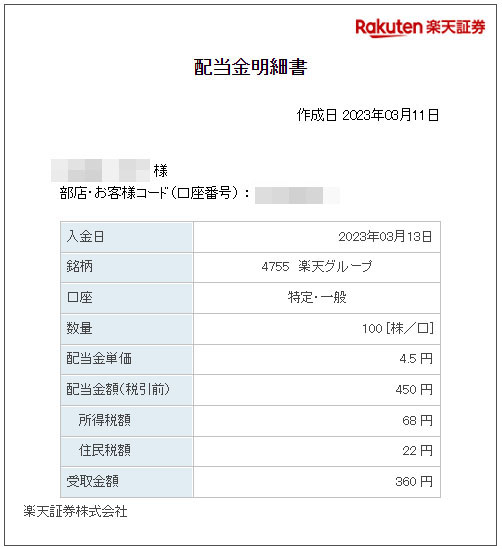 楽天証券から楽天グループ(4755)の配当金が入るとの案内メールが来ました。