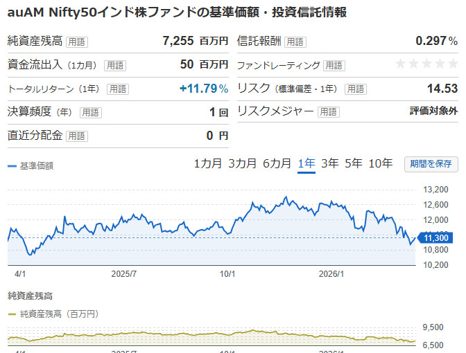 auAMインドNifty50の積立てやめます。|2026.3.20