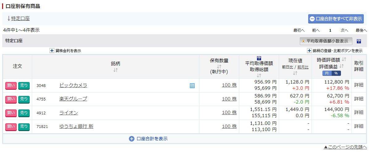 昨日はまだ保有銘柄一覧にありませんでしたが