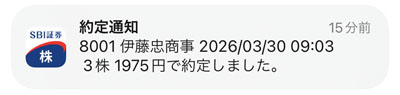 明日、3月30日の朝の寄り付き株価で約定となります。