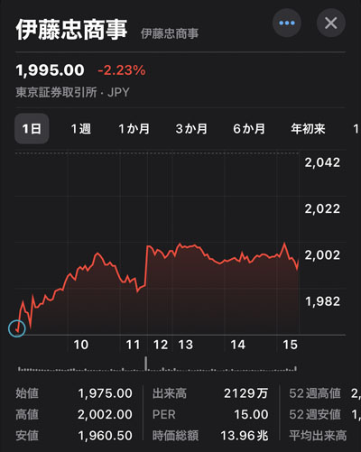 20円上がりましたが2,000円には届かずの1,995でした。