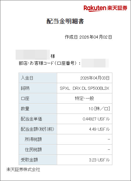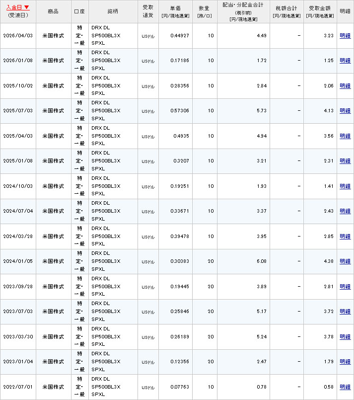 SPXLはS&P500 BULL x3なのでインカム目当てに持ってるわけではないのですが・・・。