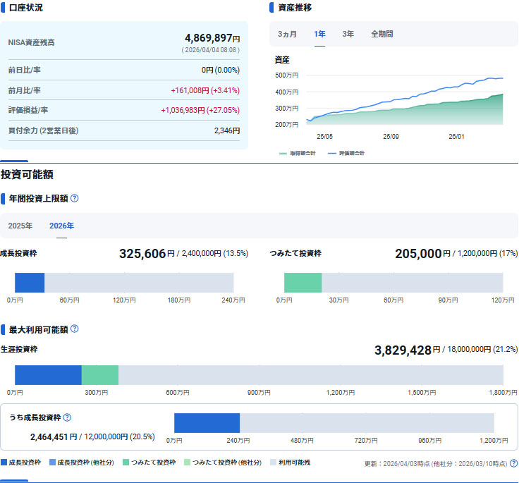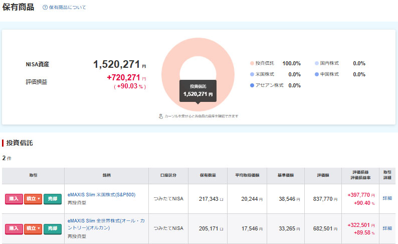 まだ今月分の「NISAつみたて投資枠」の積立てが済んでいませんが週末なので更新しました。