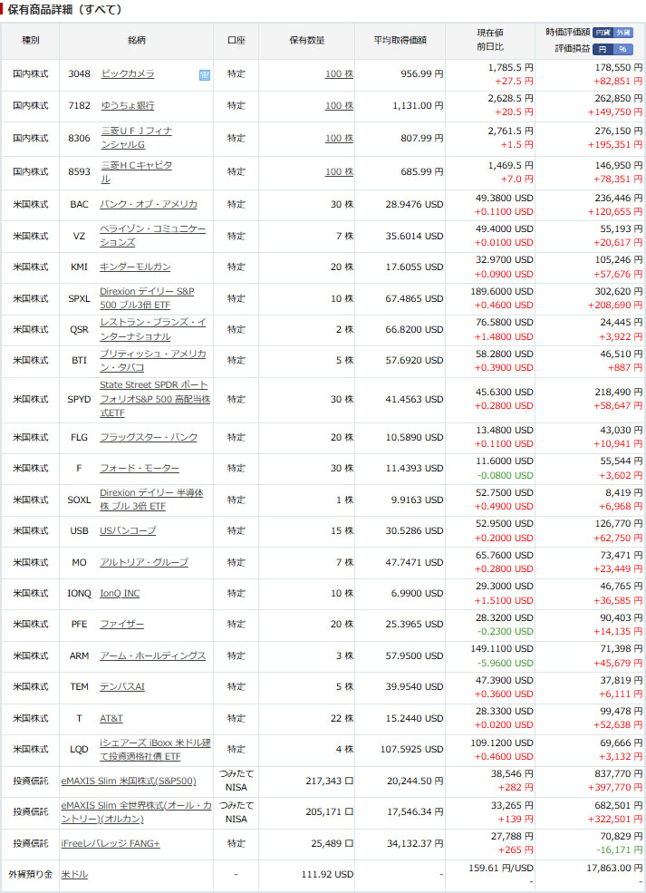 何時も通り米国の個別とレバレッジFANG+しか動いていません。