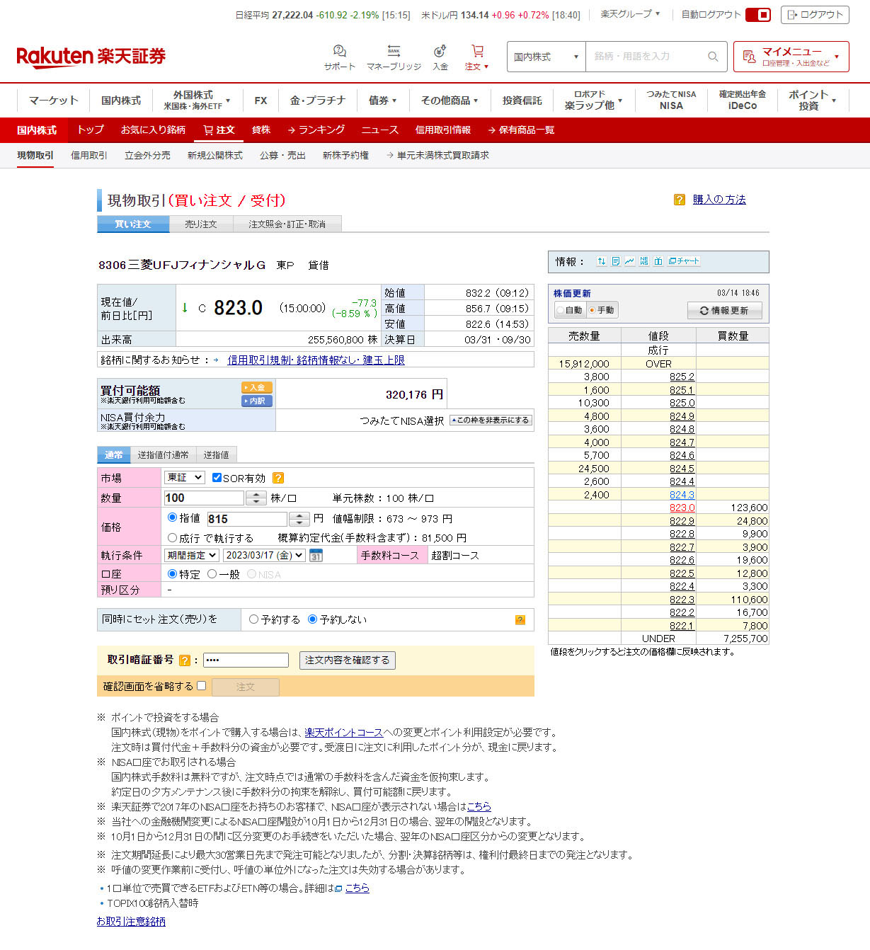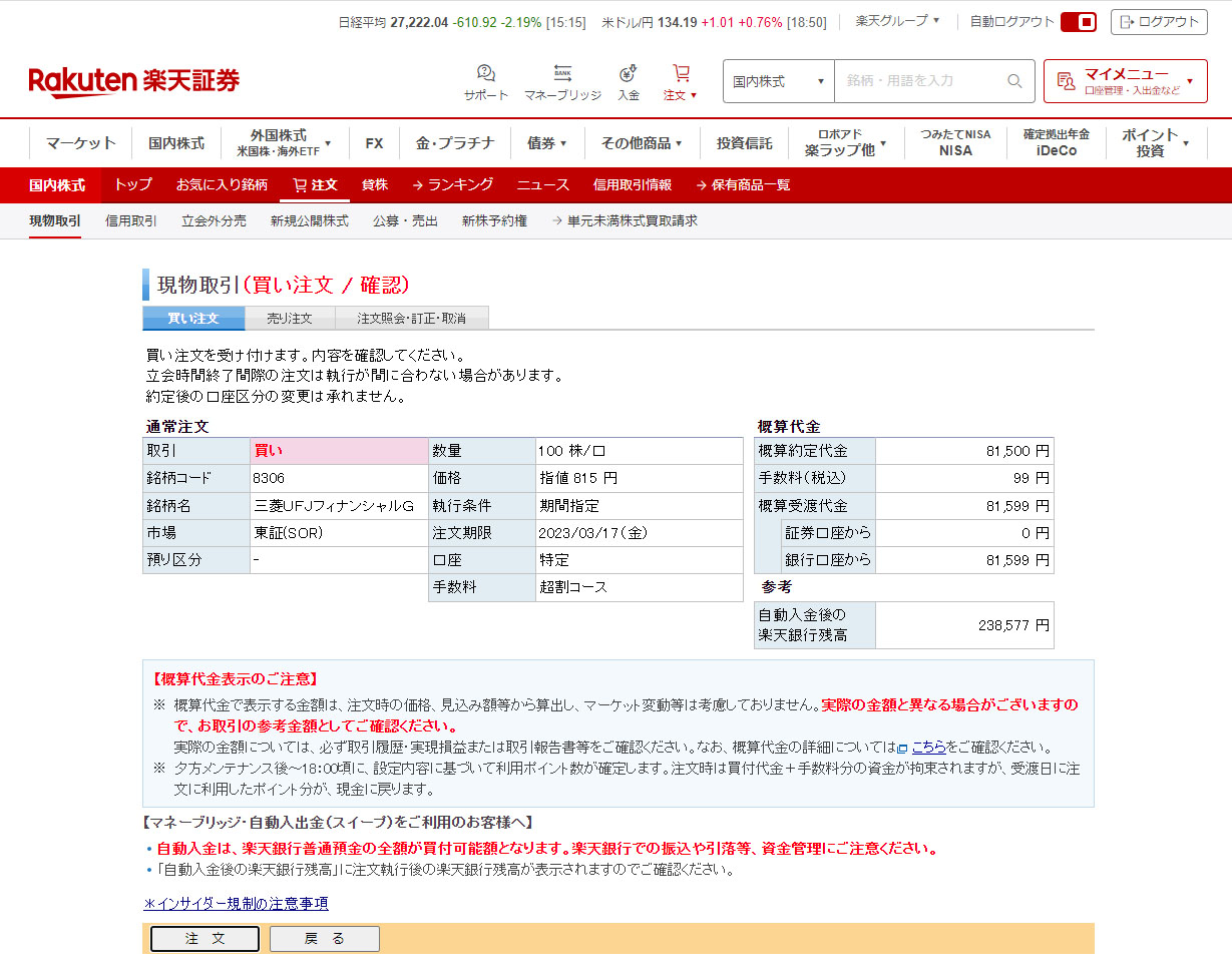 こちらも「ゆうちょ銀行」と「三菱HCキャピタル」と同時に進めてた「三菱UFJフィナンシャルG」です。