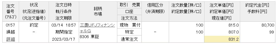 これは安い買い物だと今のところは思っています。銀行株は成長は見込めませんが手堅いしインカム目当てです。「三菱UFJフィナンシャルG」も1000円に届く前に!と思っていましたので。