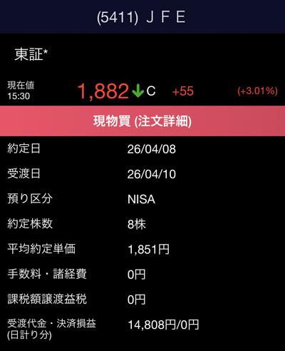 JFEホールディングス(5411)を8株追加|2026.4.7