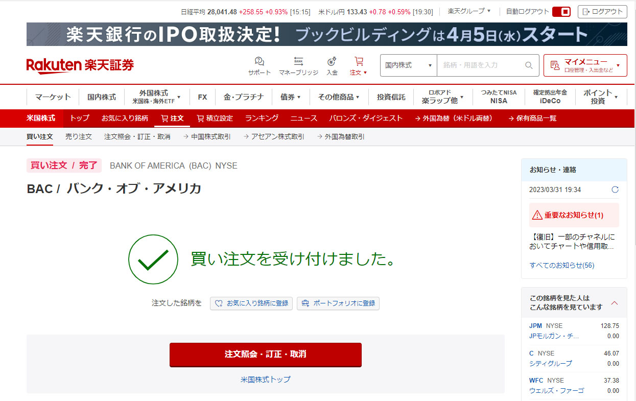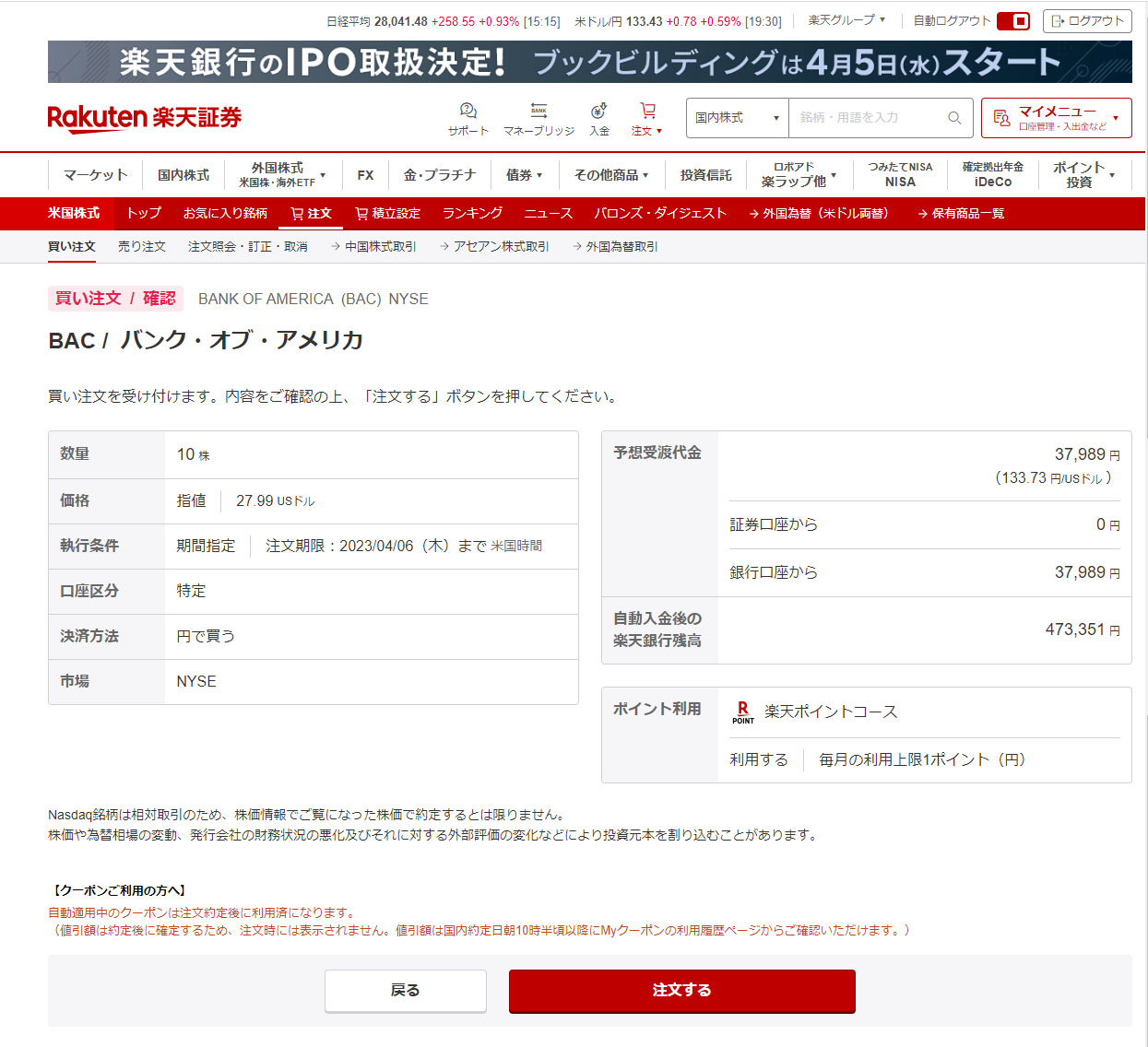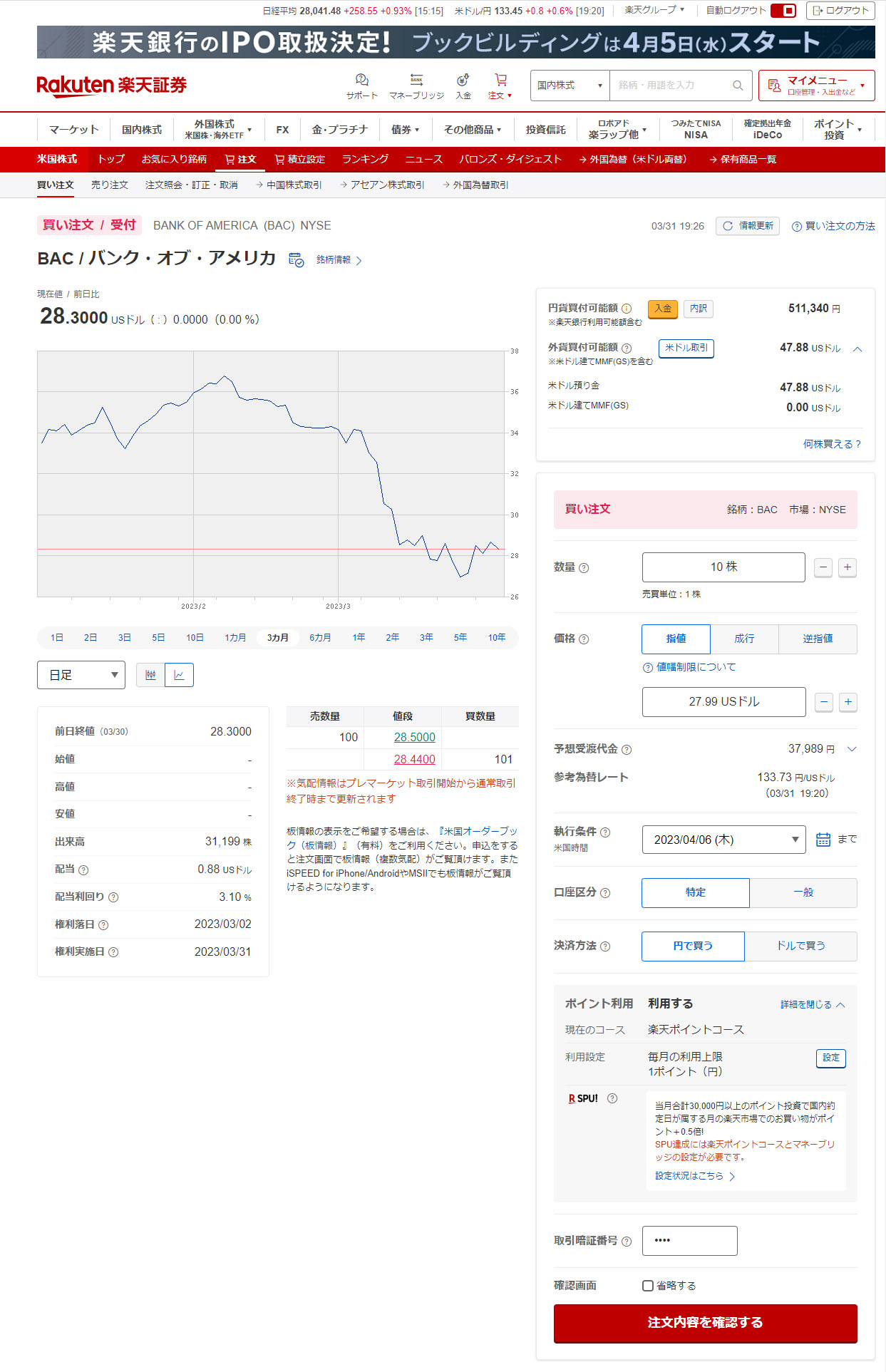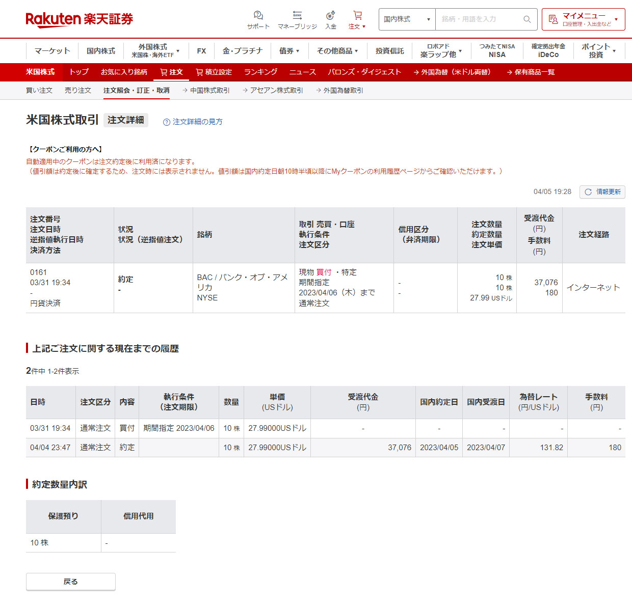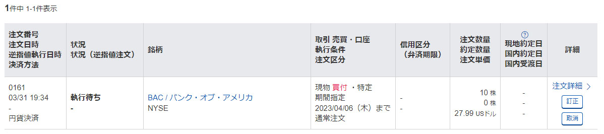 しかし今日(米国4月4日)また少し値が下がり約定していました。
