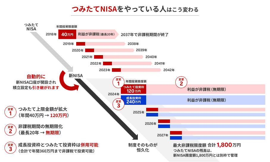 私の場合は「つみたてNISA」なのですが現状の投資分が新NISAに変わるとどうなるのか?