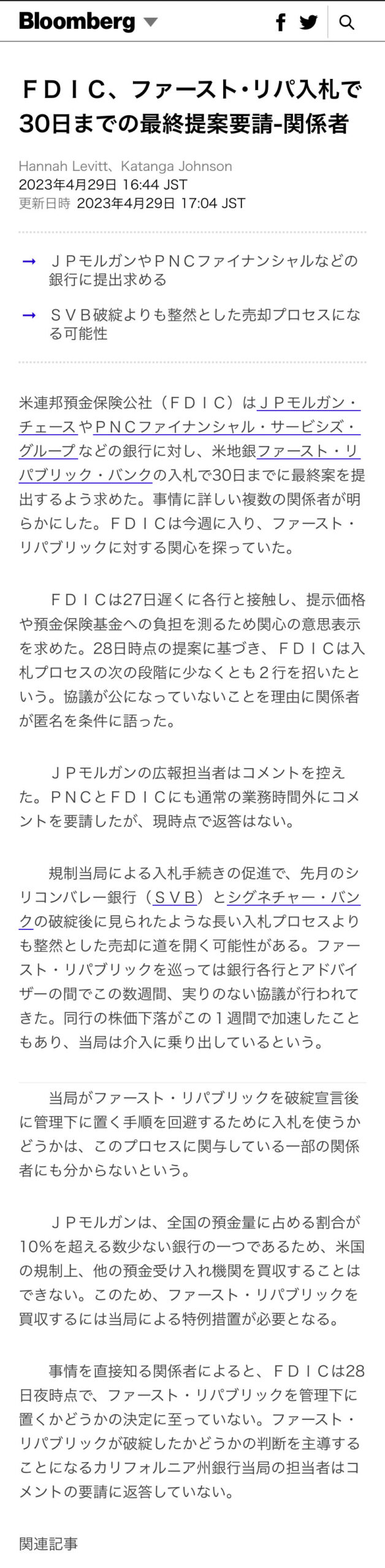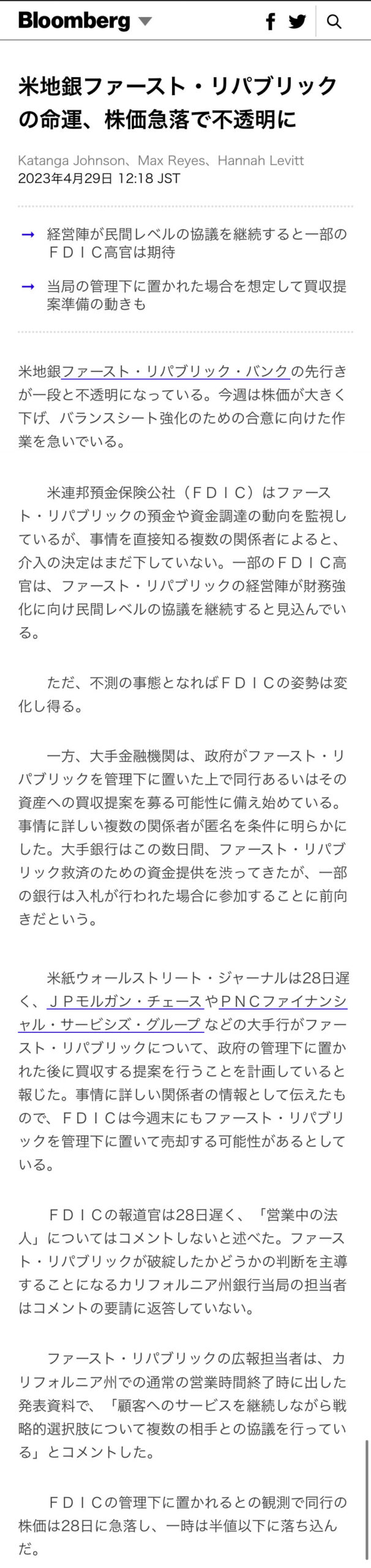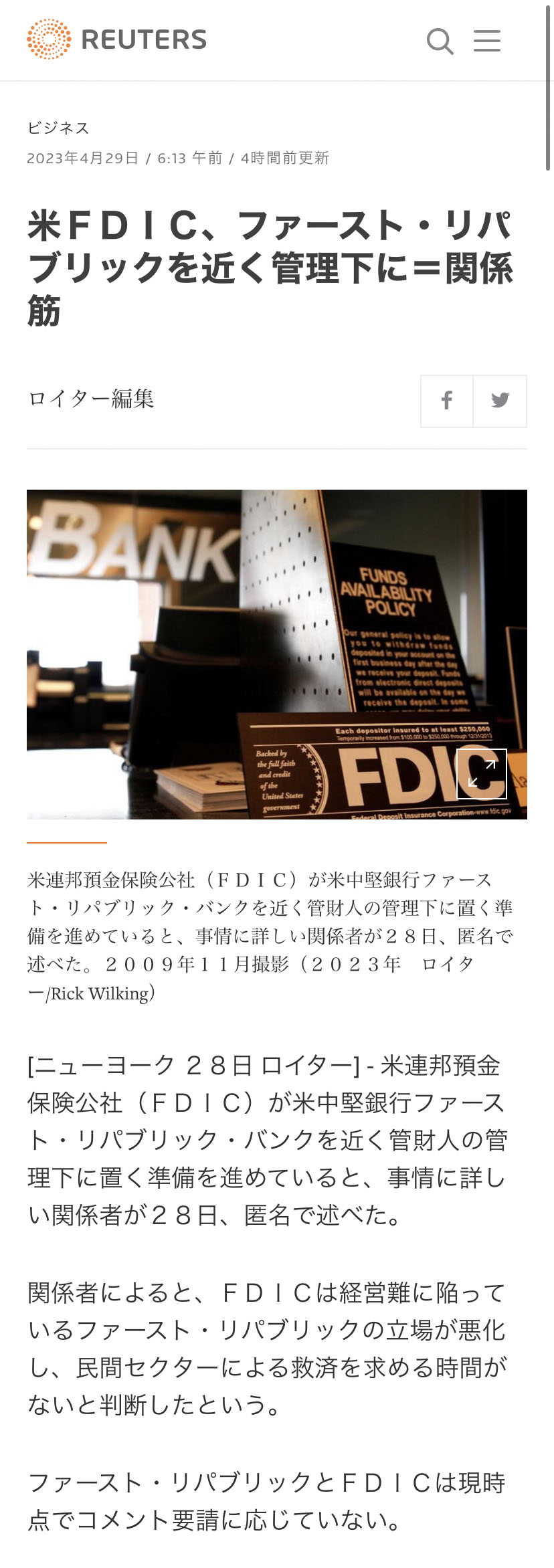 こちらもロイターと同様でまだFDICの管理下に入るのは可能性の段階。