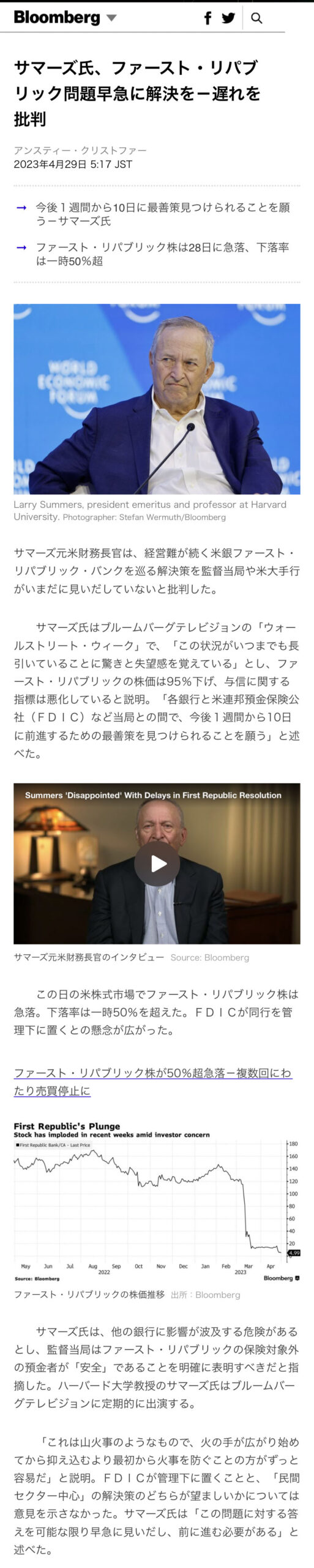 以下はブルームバーグのニュース記事で3点ほど・・・