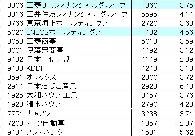 確かにそうそうたる銘柄ですね~ 個人的には大和ハウス、積水ハウス、東京海上とかは全くのノーマークでした。最近マンネリ化してますのでこれを機に新しい企画をw