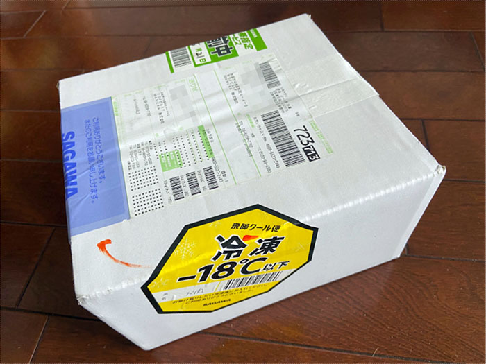 佐川急便の「飛脚クール便」です。やはりクール便の送料無料はお得感がある。