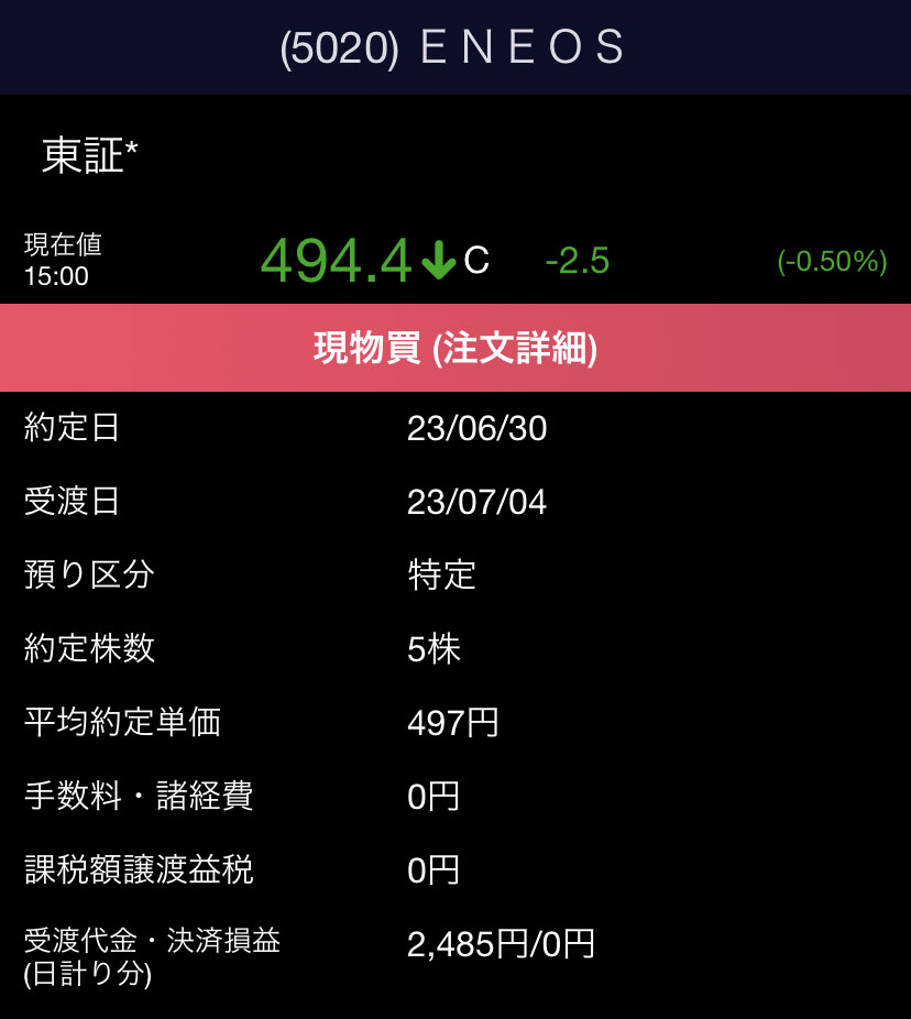 今回は普通にENEOSへ。そして金額もほぼ配当と同じ額面になるように5株です。